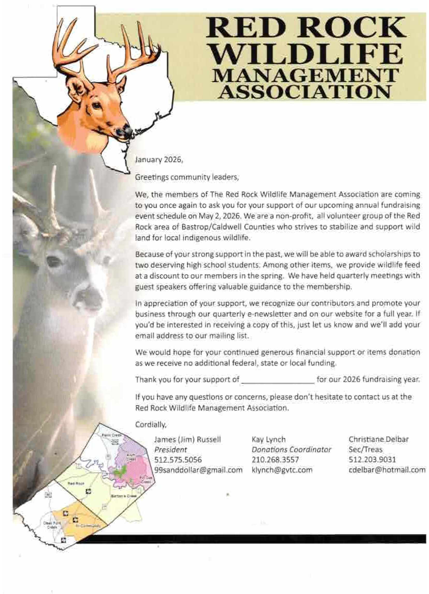 Donations coordinator : Kay Lynch Contact at 210-268-3557 or klynch@gvtc.com